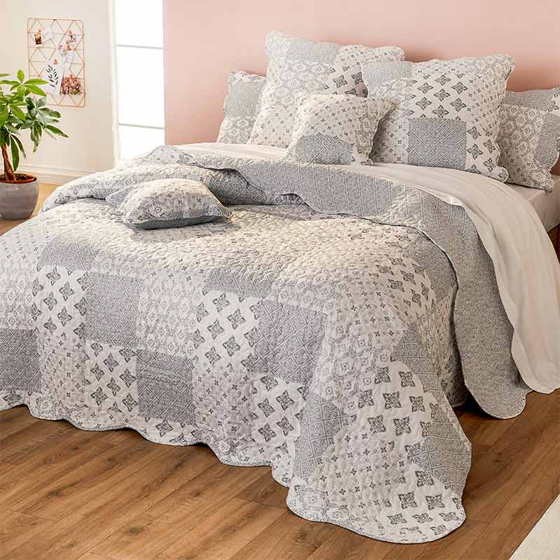 Couvre Lit Boutis Patchwork Mm19m1012 Gris Lit 2 Personnes 230x250 Cm 2 Taies Livraison Gratuite