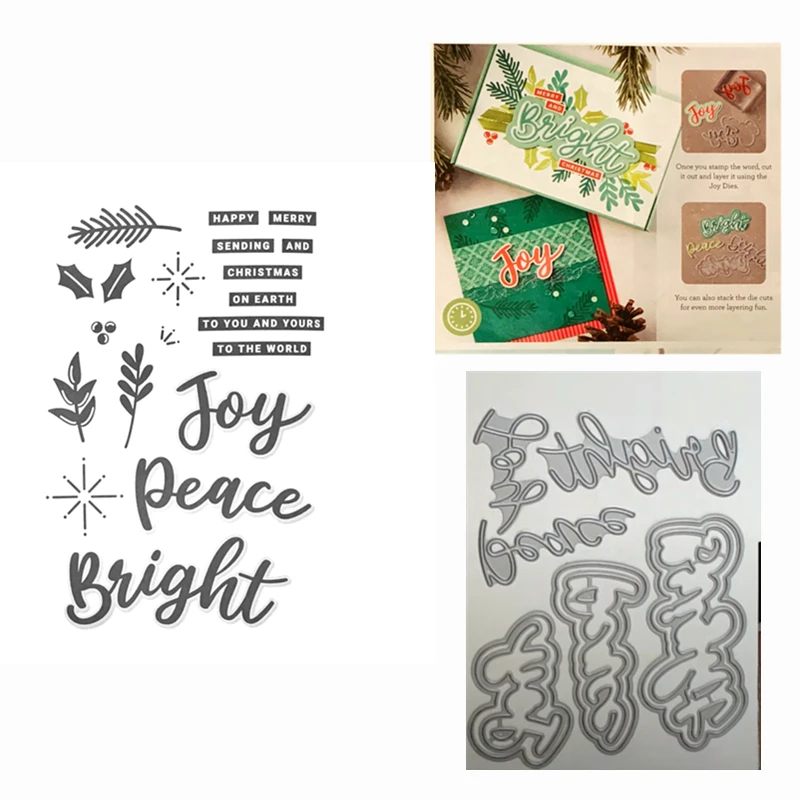 New Metal Cutting Dies And Scrapbooking For Paper Making Merry Peace Joy Embossing Frame Card Clear Stamps Stampin Up Set Cutting Dies Aliexpress