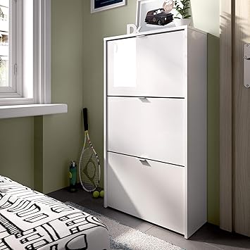 Homekit Meuble A Chaussures 3 Portes 18 Paires Melamine Blanc Brillant 61 X 113 X 25 Cm Amazon Fr Cuisine Maison