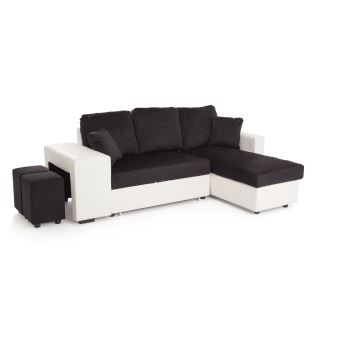 Chicago Canape Angle 3 Places Convertible Et Reversible En Simili Cuir Et Tissu Blanc Noir Achat Prix Fnac