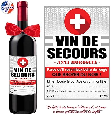 Stc Bouteille De Vin Humoristique Vin De Secours Amazon Fr Cuisine Maison