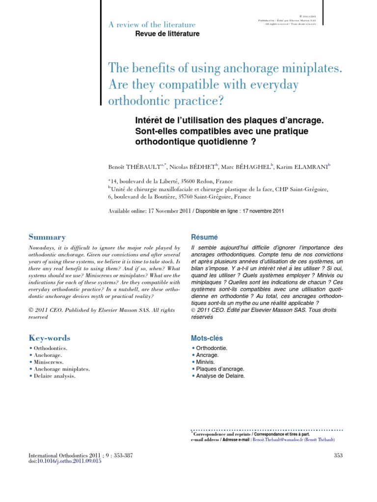 Interet De L Utilisation Des Plaques D Ancrage Sont Elles Compatibles Avec Une Pratique Orthodontique Quotidienne Sciencedirect