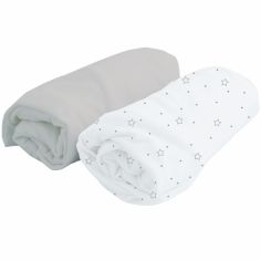 Lot De 2 Draps Housses Bebe En Jersey Extensible Imprime Etoiles Gris Chine Blanc Vertbaudet