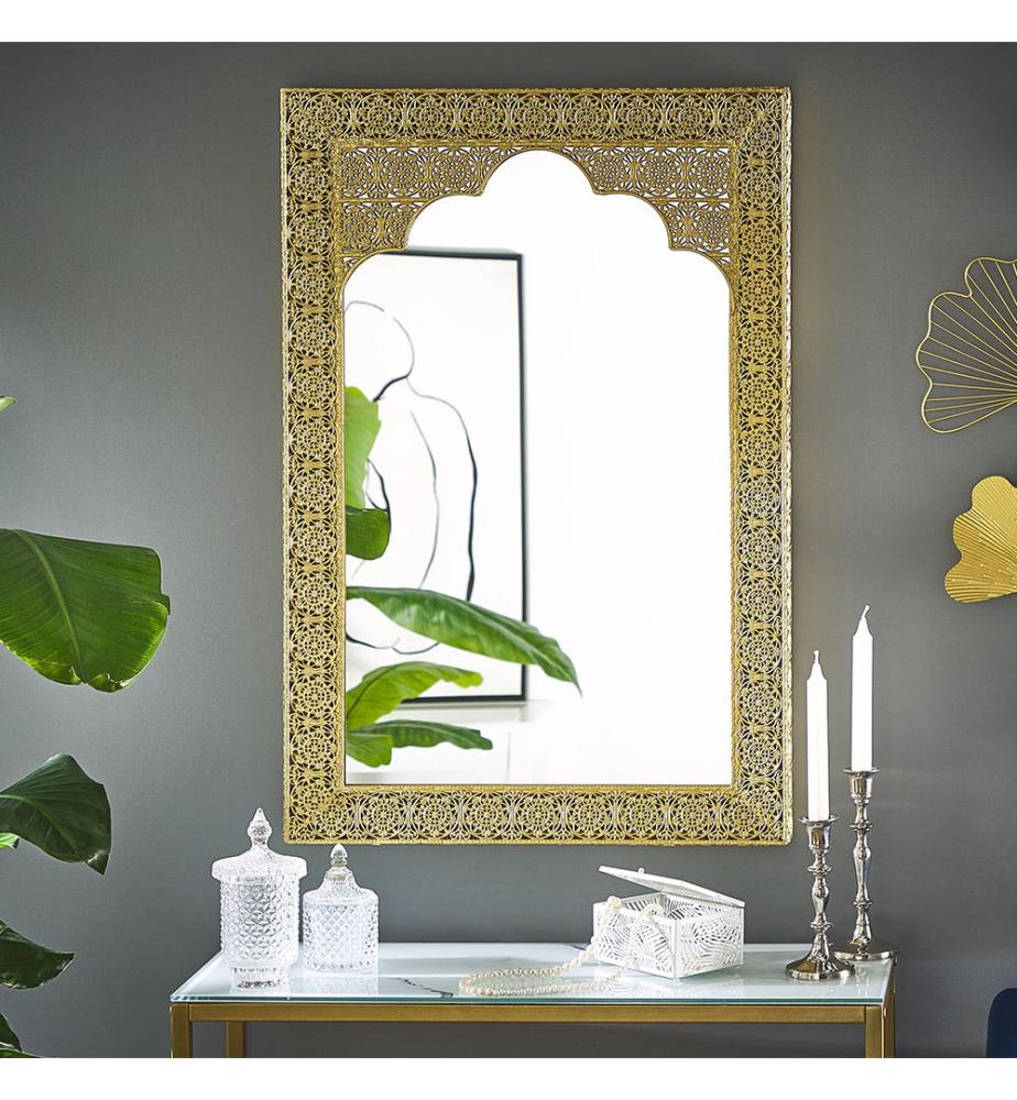 Miroir Mural Rectangulaire Marocain Dore Malik 42cm Grand Miroirs Muraux Cadre En Bois Recouvert De Laiton En Design Oriental Decoration Murale Orientale Dans La Chambre Salle De Bain Ou Salon