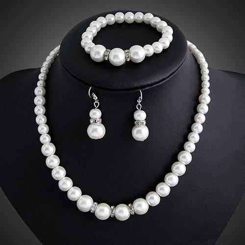 Collier En Alliage De Fausses Perles Pour Femmes Bracelet Boucles D Oreilles Ensemble De Bijoux De Mariee Achat Vente Sautoir Et Collier Collier En Alliage De Fausses Blanc