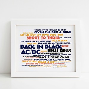 Ac Dc Back In Black Limited Edition Typography Lyrics Art Print Signed And Numbered Album Wall Art Poster Available F Typography Art Print Lyrics Art Acdc Art