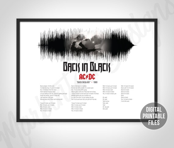 Back In Black Custom Sound Wave Lyrics Art Printable Digital Etsy