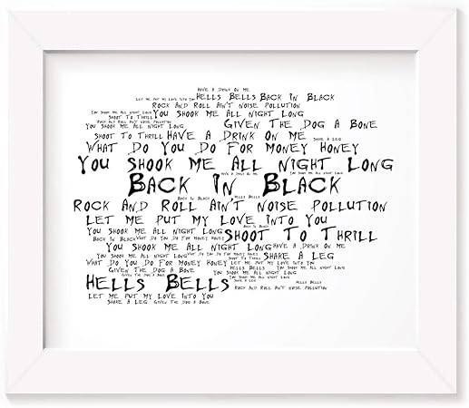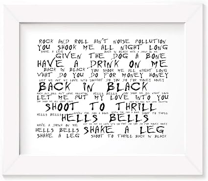 Acdc Poster Framed Gift Lyrics Print Back In Black Band Merchandise Album Art Amazon Co Uk Kitchen Home