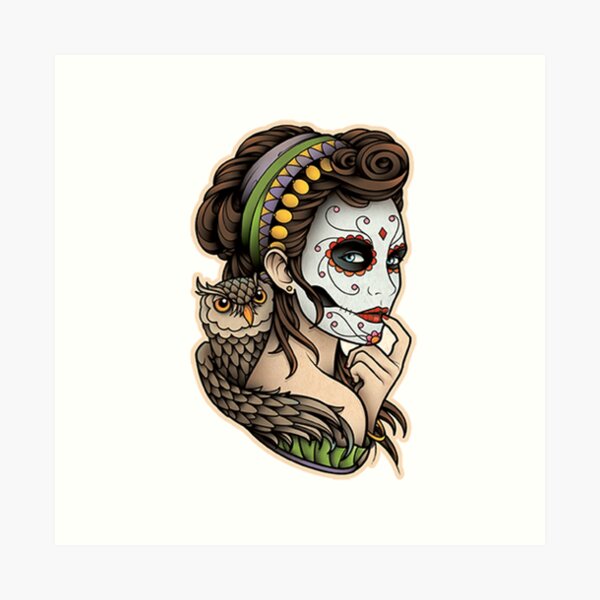 La Calavera Catrina Tattoo Art Print By Marygrace26 Redbubble