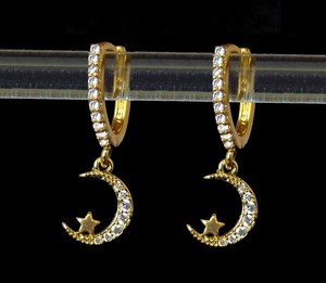 Boucles D Oreilles Petites Creoles Pendentif Lune Etoile Sertie Plaque Or Femme Ebay