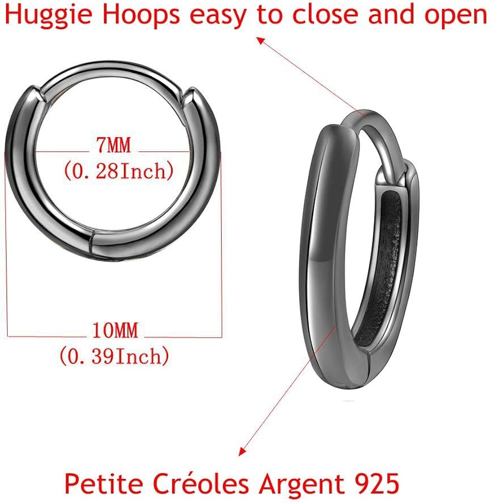 Mini Creoles Argent 925 Sterling Petite Creole Boucle Doreille Petit Anneau Anneaux Oreilles Femme Homme Ronde Noir Huggies Earrings Hoops 10mm 12mm Bijoux Boucles D Oreilles
