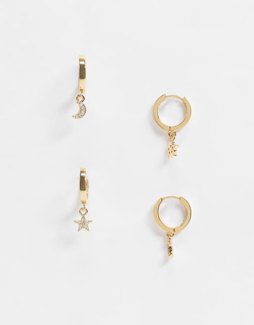 Z By Accessorize Lot De 2 Paires De Petites Creoles A Breloques Etoile Et Lune Evesham Nj