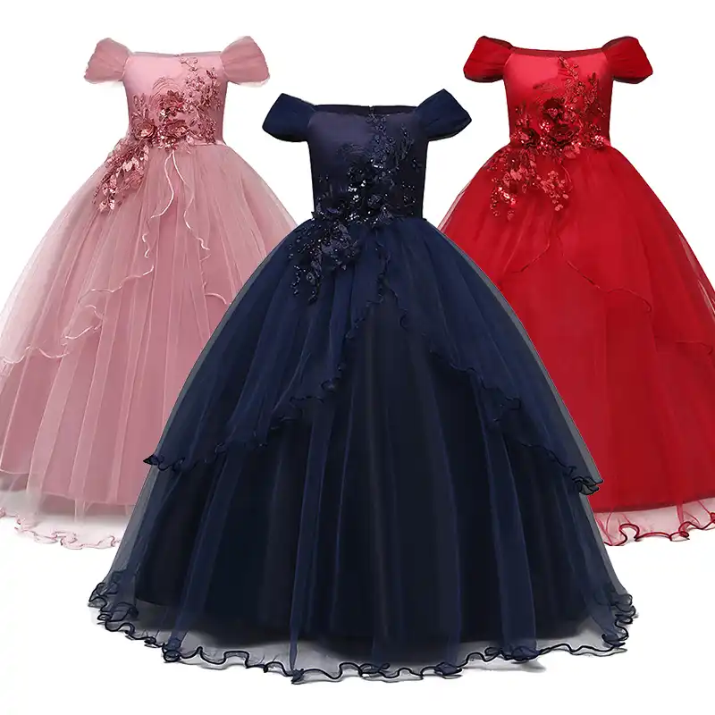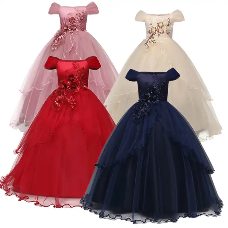 2 12 Ans Enfants Dentelle Longue Fille Robe Pour Filles De Mariage Tulle Elegant Princesse Fete Pageant Robe Formelle Rose Rouge Violet Vestido Aliexpress