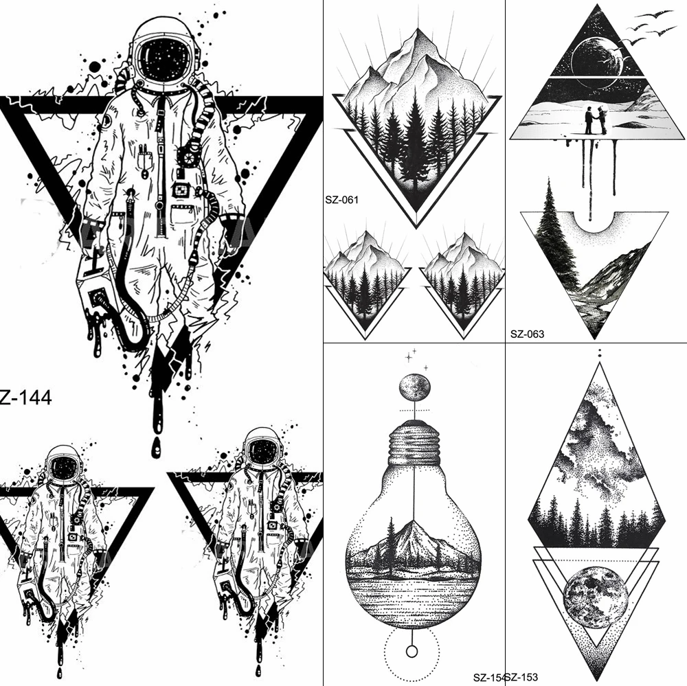 Fanrui Tatouage Triangle Noir Pour Femmes Autocollants Artistiques Geometriques Bras Astronaute Transfert D Eau Espace Homme Aliexpress