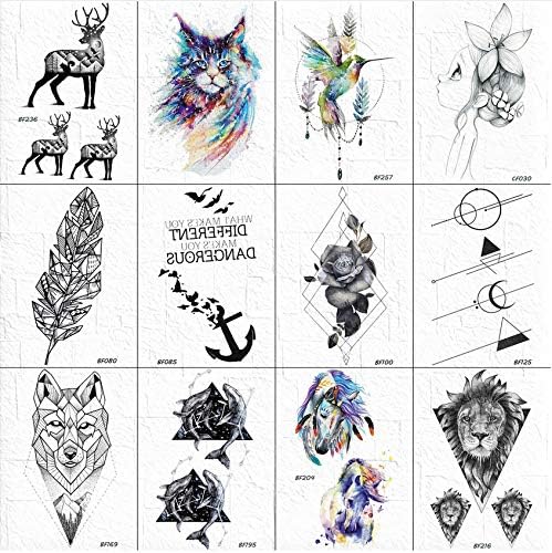 Corps Bras Art Peinture Faux Autocollants De Tatouage Geometrique Rose Cheville Tatouages Temporaire Feuille Noire Hommes Triangle Lion Renard Tatouages 10 6cm 12pcs Amazon Fr Beaute Et Parfum