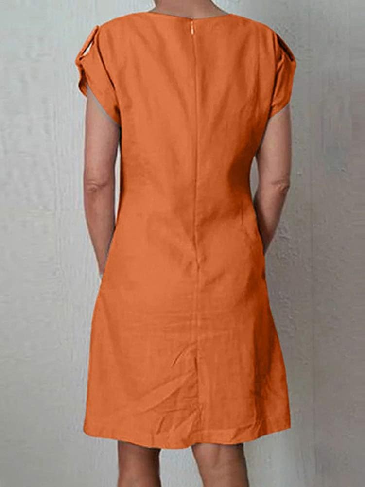 Femme Orandesigne Robe Femme Ete Couleur Unie Chic Manche Courtes Tunique Casual Grande Taille Robe Lin Col Rond Midi Dress Robe De Plage Vetements Hovdenhoyfjellsenter No