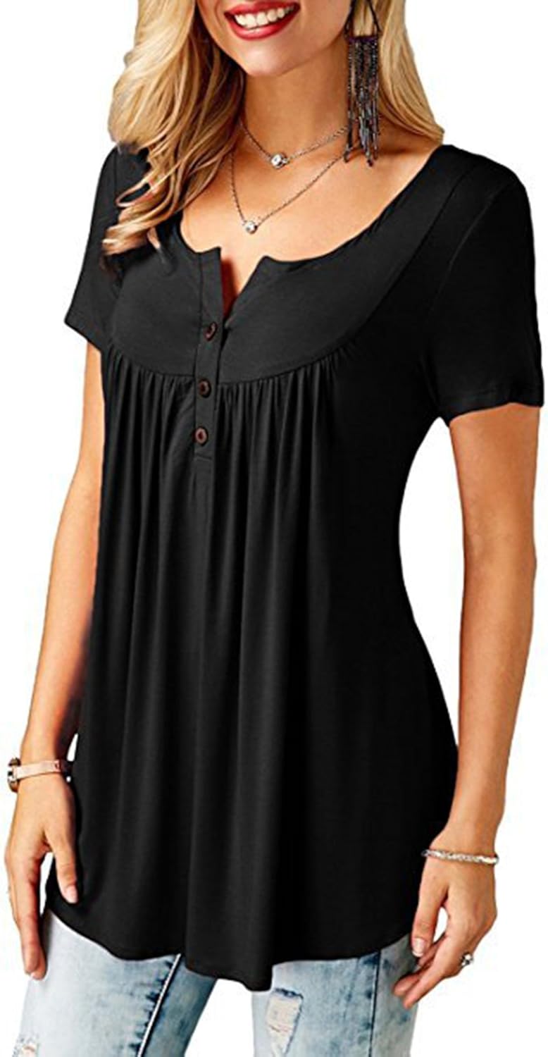 Aswinfon Tunique Femme Ete Manche Courte Grande Taille Fluide Casual Top Blouse Tee Shirt Haut Femme Vetements