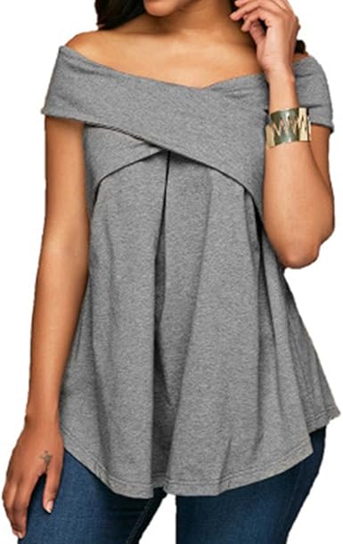 Hibote Blouse Femme Ete Haut Hors Epaule Chemise Cross Criss Top Tunique Plissee Manches Courtes Hauts Couleur Unie Lache T Shirt Amazon Fr Vetements Et Accessoires