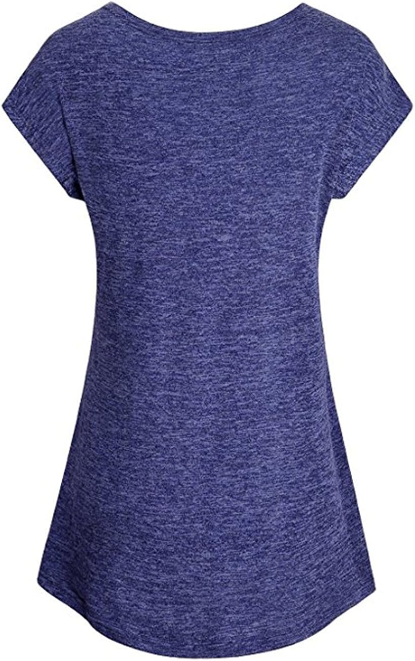Winfon Tunique Femme Ete Manches Courtes Grande Taille Coton Casual Blouse Top Tee Shirt Longue