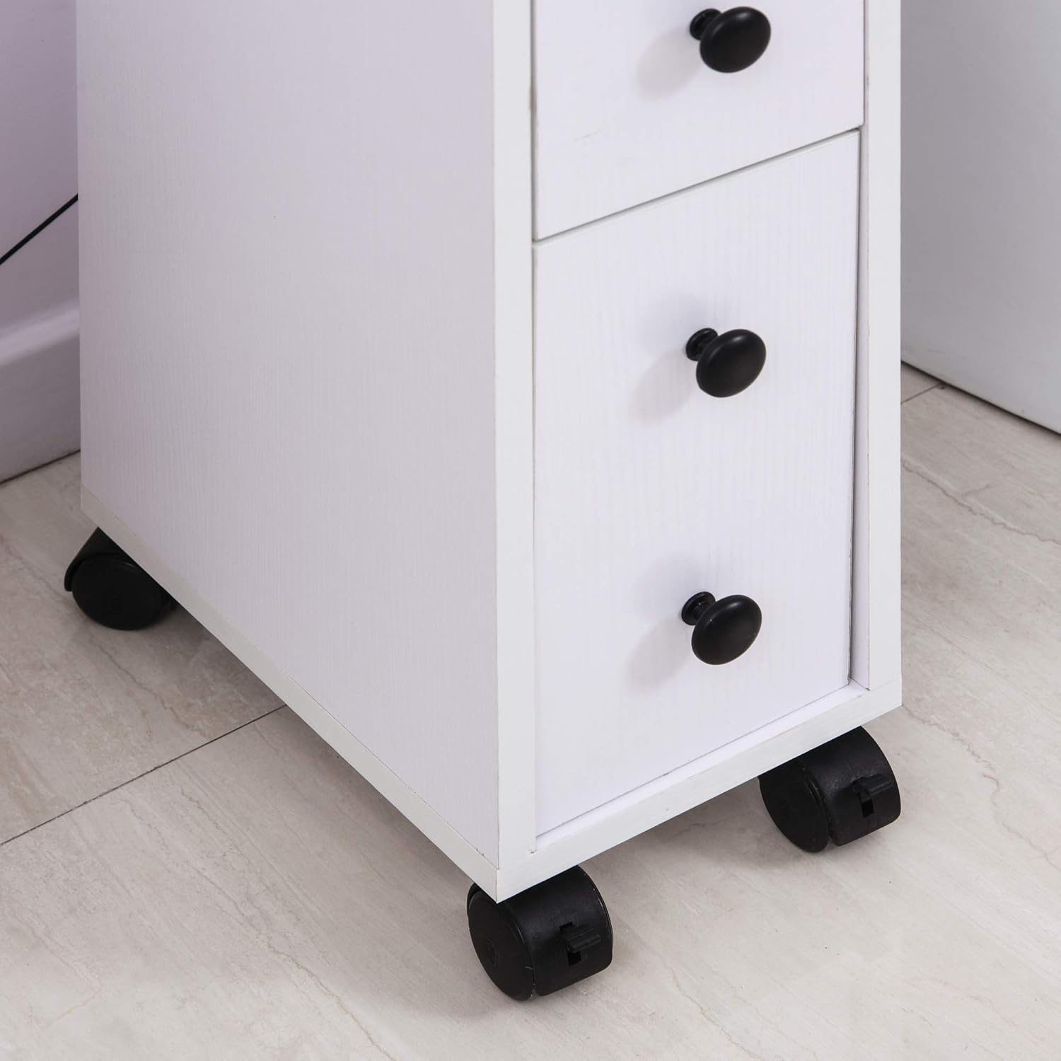 Homcom Meuble Bas Colonne Rangement Salle De Bain A Roulettes Blanc Dim 18l X 30l X 68 5h Cm Salle De Bain Meubles De Rangement