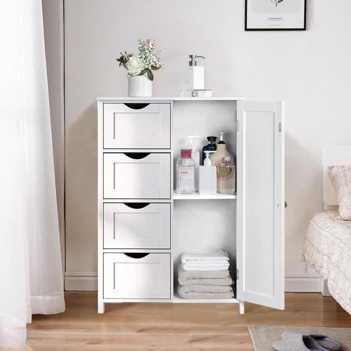 Meuble Salle De Bain Armoire De Rangement Avec 4 Tiroirs Et 1 Portes Achat Vente Meuble Bas Commode Sdb Meuble Salle De Bain Armoir Soldes Sur Cdiscount Des Le Janvier Cdiscount