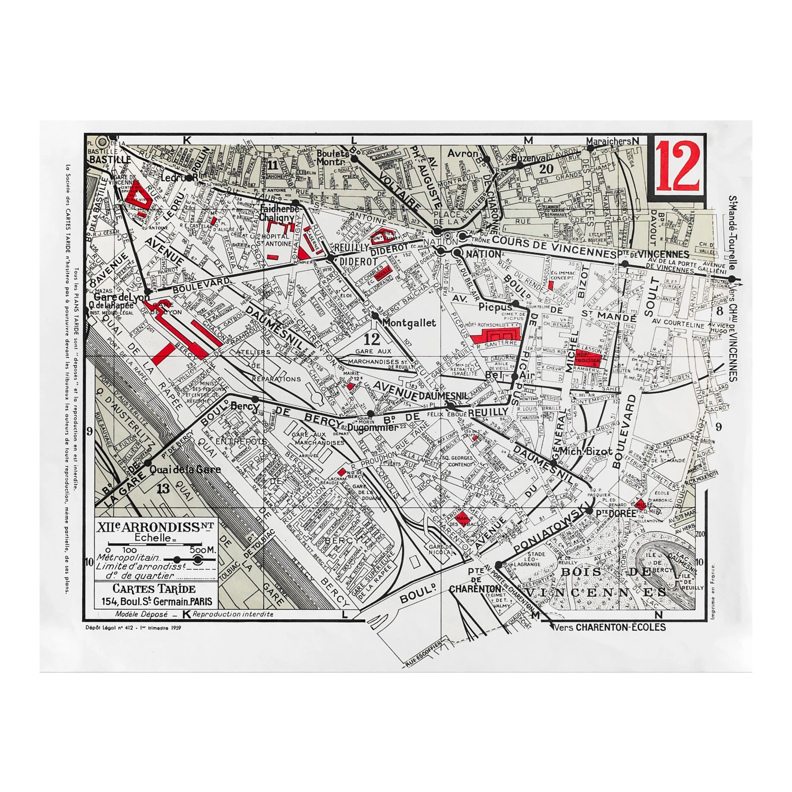 1959 Original Cartes Tarides Map Of Paris Xii Arrondissement Chairish