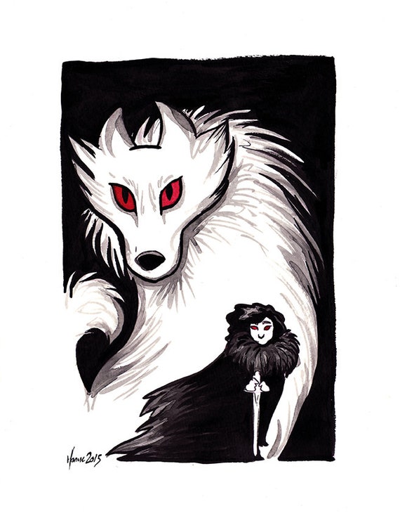 Game Of Thrones Jon Snow King In The North White Wolf Art Etsy
