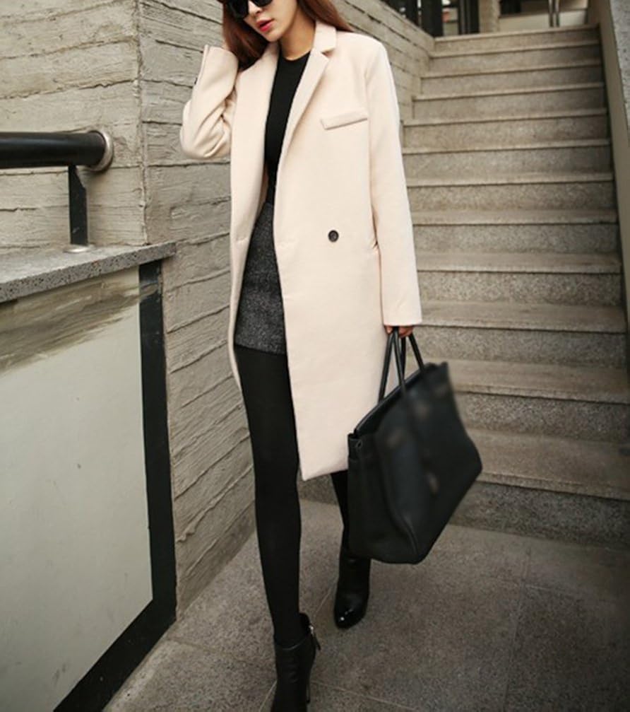 Longue Manteau En Laine Boutonnage Manches Longues Mode Oversized Femme Blouson Noir Manteaux Hauts