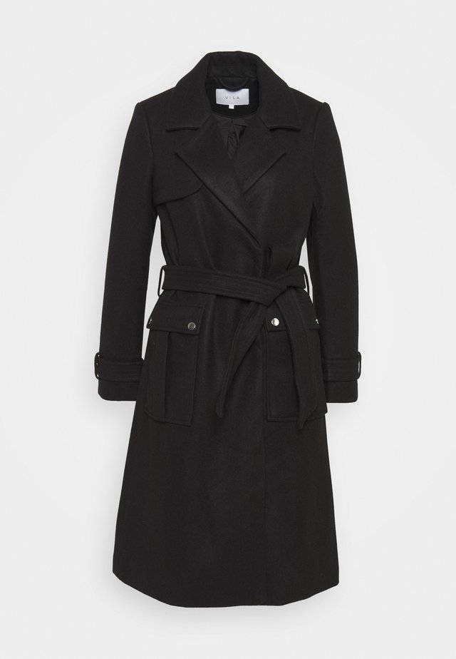 Manteau Style Peignoir En Lainage Noir Hiver Femme Trench Coat