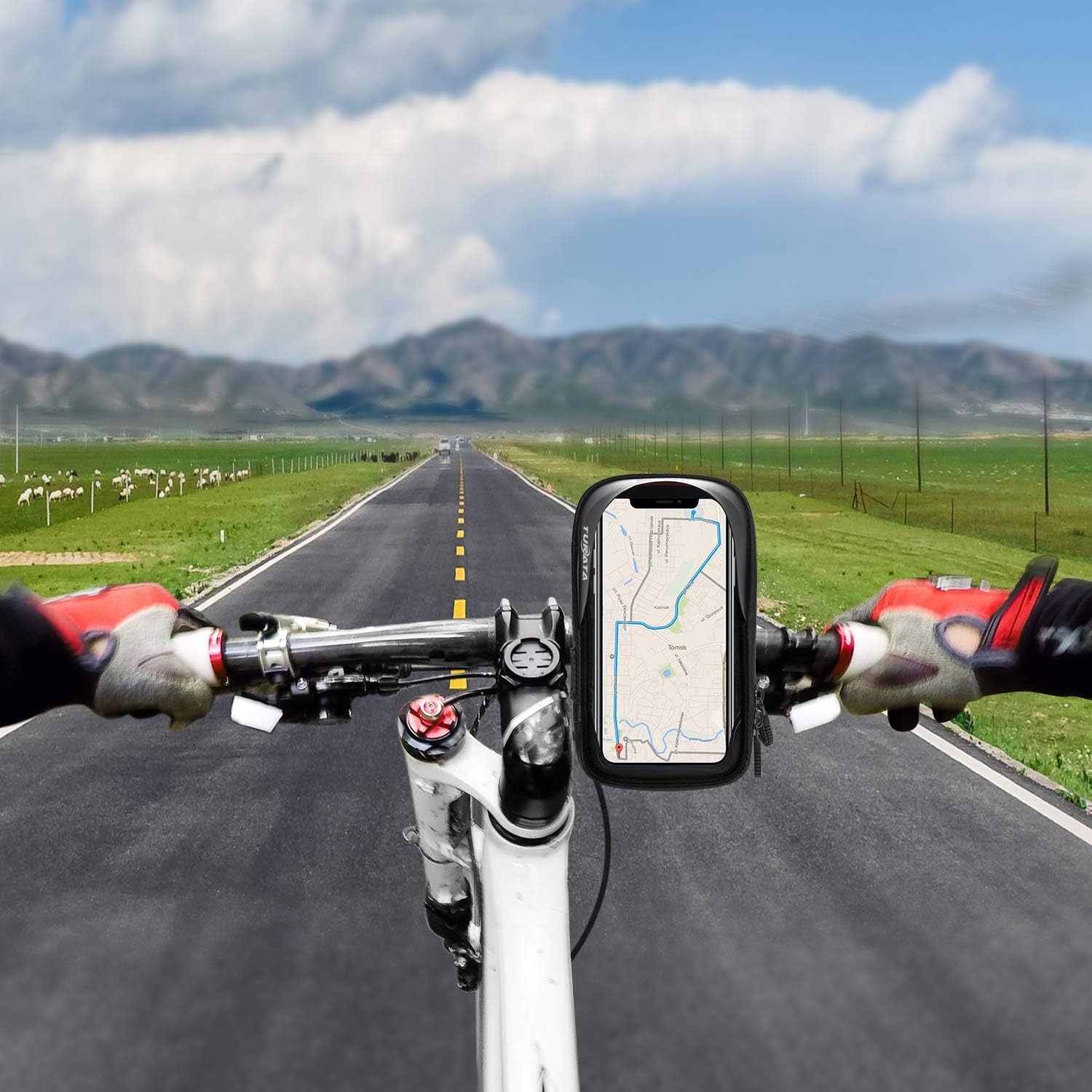 Turata Sacoche Velo Guidon Sac Impermeable Sac Support Etanche Pour Telephone Portable Ecran Tablette Cyclisme Equipement Et Accessoires