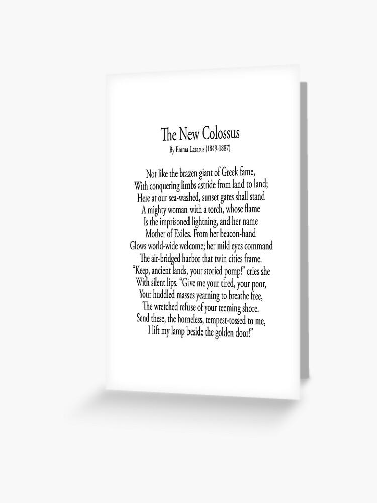 Poetry Poem The New Colossus By Emma Lazarus 1849 17 Greeting Card By Tomsredbubble Redbubble
