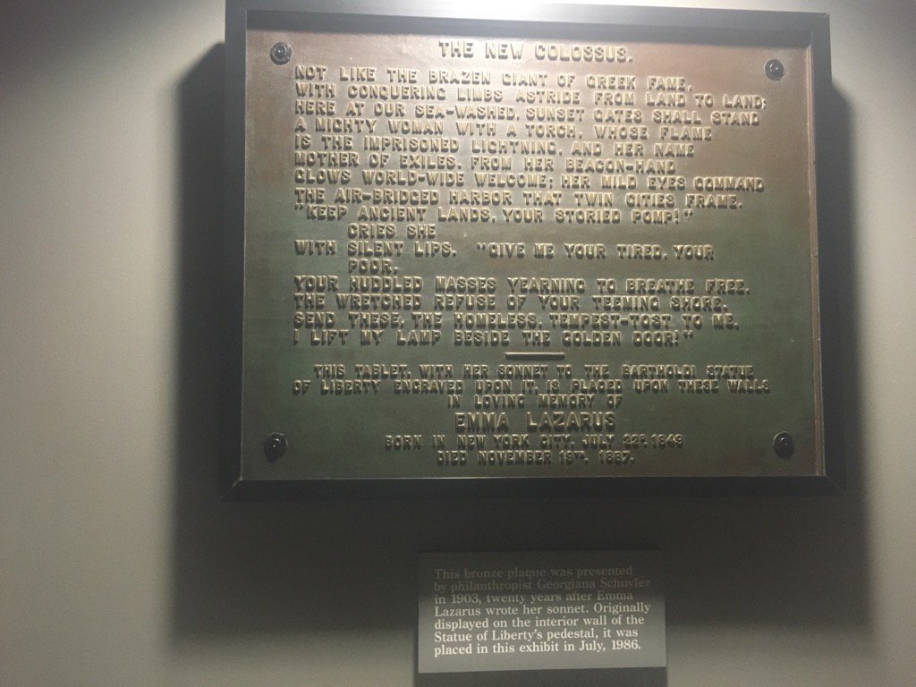“The New Colossus” was the only entry read at the exhibits opening but was forgotten and played no role at the opening of the statue in 16 Lazarus died young, in 17, of cancer But in 1903, a plaque bearing the text of the poem was mounted on the inner wall of the statue’s pedestal You can read it there today It is an amazing poem. White House aide Stephen Miller caused a stir Wednesday when he argued that “The New Colossus,” the poem written for and featured on the Statue of Liberty, wasn’t relevant to the meaning of the statue because it was “added later”. In 1945, the engraved lines of Emma Lazarus' poem, "The New Colossus," were placed over the entrance to the Statue of Liberty Though the statue was intended to be a symbol of enlightenment for Europeans battling oppression at home, Lazarus' poem transformed Lady Liberty into something more a beacon of hope for immigrants leaving those very countries.