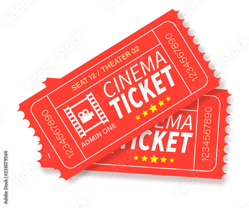 Two Red Vector Designed Cinema Tickets Cinema Theater Concert Play Party Event Festival Ticket Realistic Template Set Realistic Cinema Ticket Icon In Flat Style Buy This Stock Vector And Explore Similar Vectors