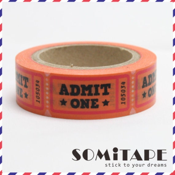 Admit One Cinema Ticket Orange Washi Tape Craft Decorative Etsy