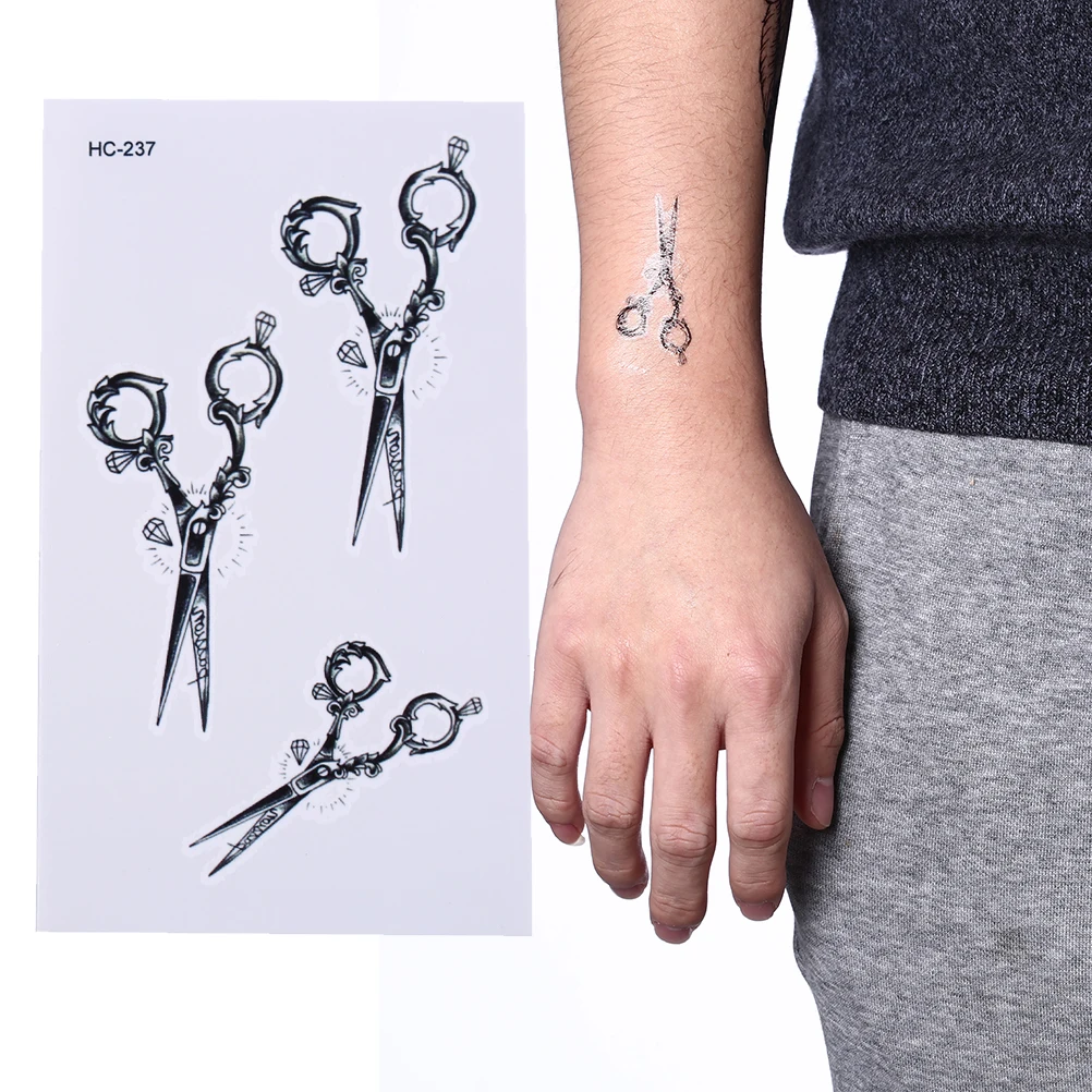 Autocollant Pour Homme Femme Henne Faux Flash Tatouage Autocollants 3d Ciseaux Bras Corps Art Sexy Harajuku Impermeable Temporaire Tatouage Aliexpress