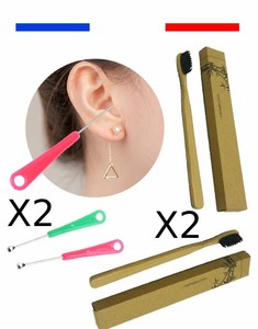 Kit Ecologique Durable 2 Brosse A Dent Bambou 2 Oriculi Coton Tige Ebay