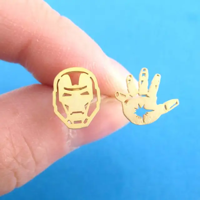 Daisies Boucle D Oreille Femme Gold Silver Plated Iron Man Costume Mask And Glove Asymmetry Stud Earrings 1pair In Stud Earrings From Jewelry Accessories On Aliexpress Com Alibaba Group