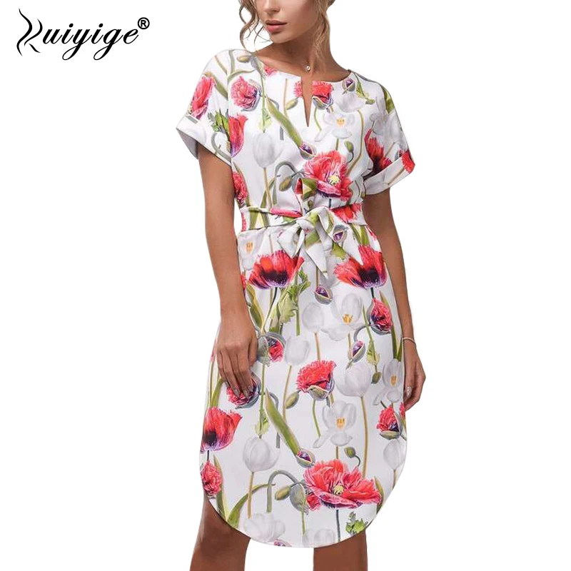 Jellyywt Achat Ruiyige 18 D Ete Mi Longue A Imprime Floral Robe Decontractee A Manches Courtes Robes De Soiree Femmes Boho Banc Avec Ceinture Ourlet Irregulier Pas Cher Prix