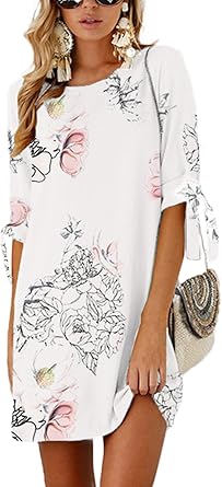 Yoins Femme Robe Ete Mi Longue Manches Petite Robe Courte Mini Robe Casual Col Rond Decontractee Amazon Fr Vetements Et Accessoires