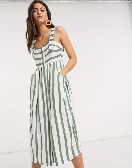 Asos Design Robe D Ete Mi Longue A Rayures Avec Bretelles A Boucles Style Salopette Asos