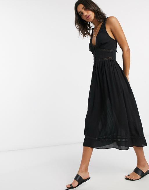 Asos Design Robe D Ete Mi Longue Caraco Cotelee Noir Asos
