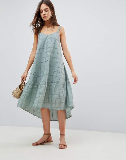 Asos Design Robe D Ete Mi Longue En Broderie Anglaise Boutonnee Devant Blanc Asos