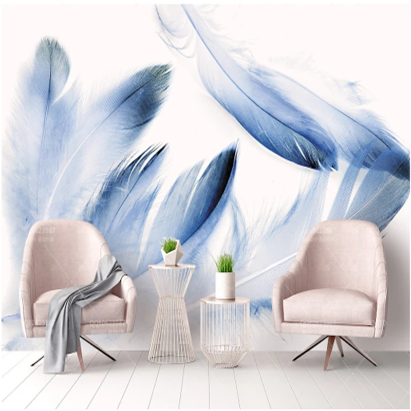 Papier Peint Plume 3d Bleu Personnalise Papier Peint Minimaliste Moderne Pour Chambre D Enfants Bon Marche Pour Chambre A Coucher Restaurant Cuisine Bureau Aliexpress