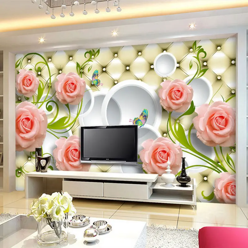 Sivyjdavu Vente 3d Photo Papier Peint Mural Rouleau De Luxe Style Romantique Peinture Rose Stereoscopique Roses Fleurs Home Decor Pour Salon Chambre Pas Cher Prix