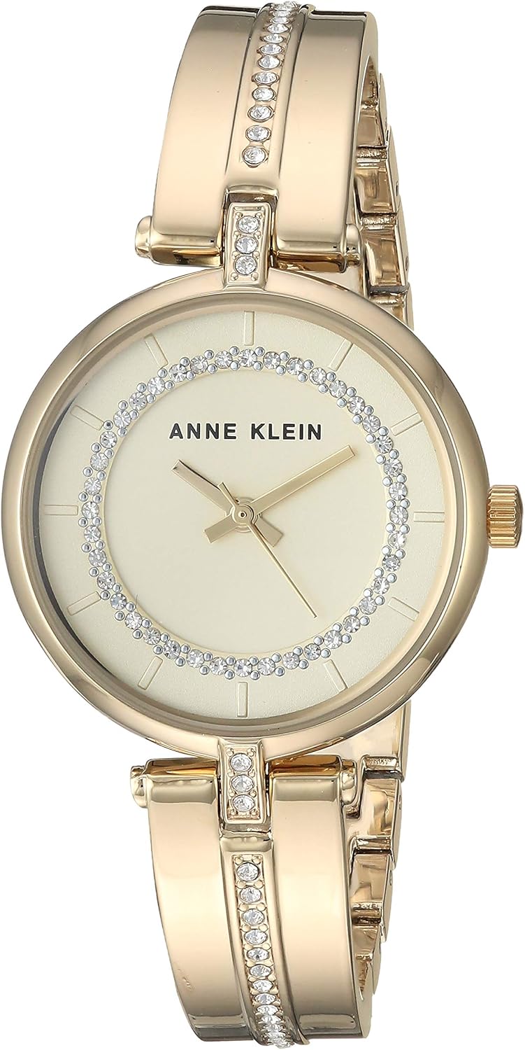 Amazon Com Anne Klein Women S Ak 3248chgb Swarovski Crystal Accented Gold Tone Bangle Watch Watches