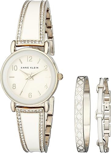 Amazon Com Anne Klein Women S Ak 24ivst Swarovski Crystal Accented Gold Tone And Ivory Watch And Bangle Set Watches