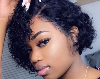 Amazon Com 8 Curly Bob Lace Front Wigs Human Hair 13x4 Short Bob Wigs Water Wave Lace Front Wigs Human Hair 9a Brazilian Remy Human Hair Wigs For Black Women Pre Plucked