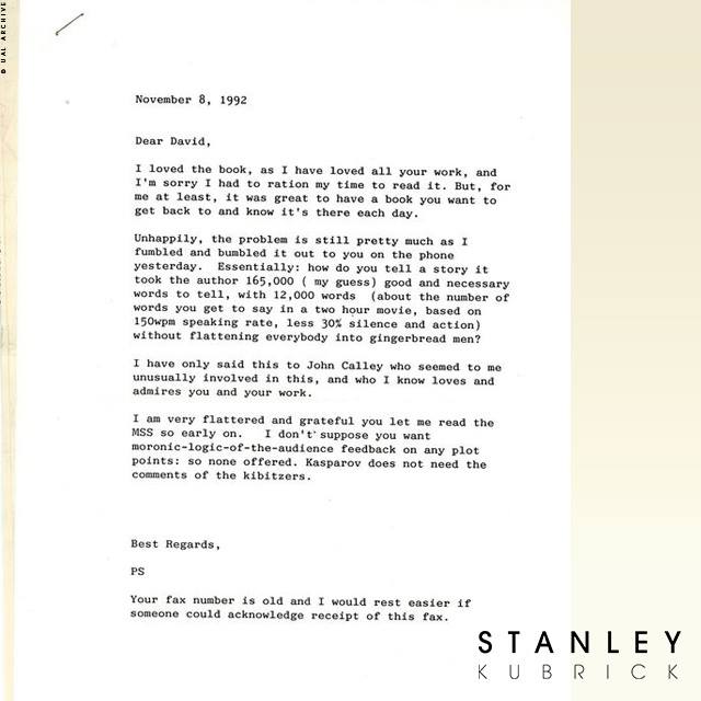 Stanley Kubrick Despite Stanley Regretfully Declining The Opportunity To Direct His Previous Novel The Night Manager In 96 Johnlecarre Sent Kubrick A Signed Advanced Copy Of The Tailor Of Panama