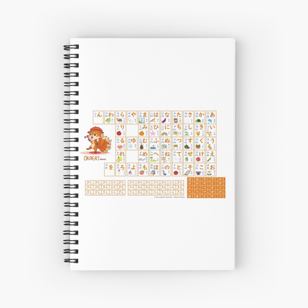 Cahier A Spirale Tableau Kana Hiragana Et Katakana Par Okaerifrance Redbubble