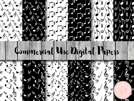 Music Notes Pattern Black White Music Digital Papers Instant Etsy